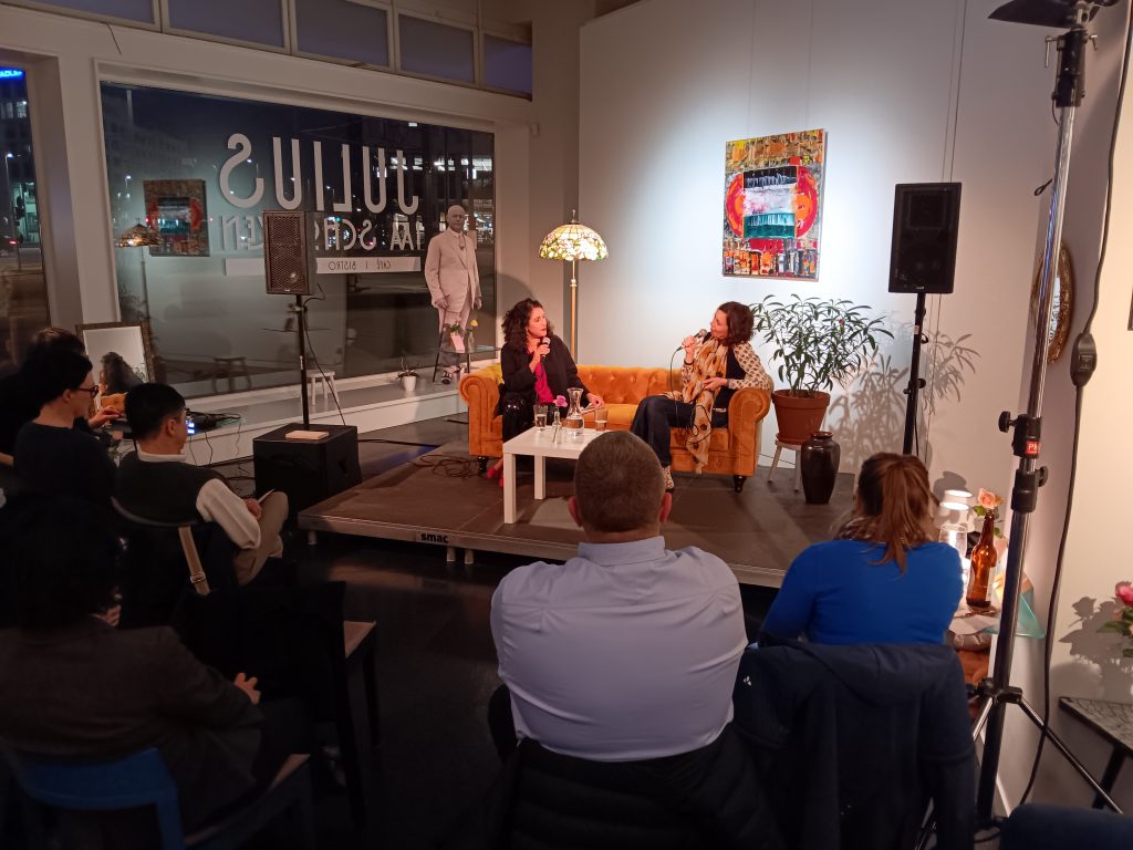 Die Veranstaltung fand ohne Förderung statt, so wie die nächsten der Reihe. Neun Gespräche sind geplant. Schön zu sehen, dass Sabine Wolfram, Direktorin des smac und Chefin des Tacheles-Jahres, den Veranstaltern den Rücken stärkt, ebenso wie Chris Münster vom Verein Tage der jüdischen Kultur. Er wird übrigens zum Sündenbock wegen des Verfahrensfehlers der Kulturstiftung gemacht.